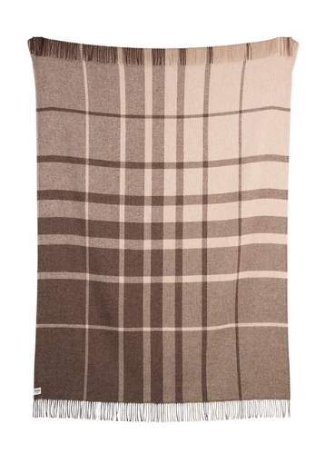 Fargeblandingene som oppstår i rutene der de vevde trådene krysser hverandre er harmoniske og varme, og går fra lyst til mørkt. Slik kan du selv velge uttrykk, alt etter hvordan du bretter pleddet.