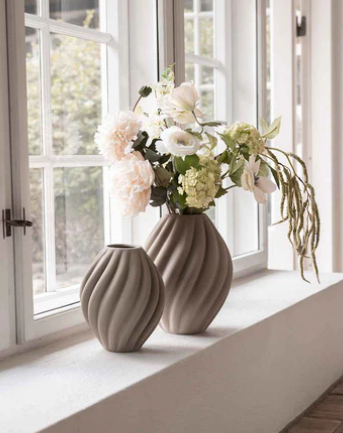 Flora-vasen, med sin skulpturelle og moderne form, er designet for å være et sentralt designobjekt.