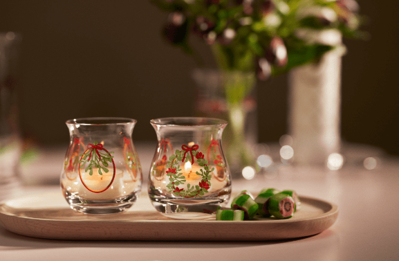 Med kunstneren Jette Frölichs ikoniske papirklipp inviterer Holmegaard Christmas oss i 2025 til å feire Holmegaards 200-årsjubileum med en reise inn i den romantiske julens verden. Et tema som ikke bare refererer til de dekorative elementene i den elskede Holmegaard-julekolleksjonen, men også minner om romantikken og Danmarks gullalder – den historiske perioden Holmegaard ble grunnlagt i. Motivene fra 2025 pryder naturligvis seriens sjarmerende jule-telysholdere, som skaper en varm og nostalgisk atmosfære, inviterer til hyggelige samtaler og fremkaller følelsen av tidligere juler. Telysholderne måler 7,5 cm i høyden og 7 cm i diameter. De kommer i et sett på to, slik at du kan nyte de utsøkte motivene sammen og sette pris på kombinasjonen av Holmegaards lidenskapelige glasshåndverk og Jette Frölichs originale kunstneriske univers mens du ønsker julen velkommen i gløden av levende lys med familie og venner.