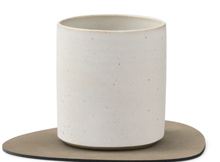 Denne glassmatten er designet med en bred palett av farger og strukturkombinasjoner og er laget i Danmark av OEKO-TEX®-sertifisert resirkulert skinn.