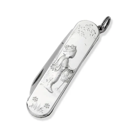 Lommekniv Prins Eik kr 1.599,00 Varenummer: 8372 Lagerstatus: Varen er på lager Velg antall Lommekniv med beslag i ekte sølv. Dekorert med en liten prins, 5,8 cm. Sølvkjede selges separat, varenummer 8399. Del denne siden med andre! Ditt navn: Din epost: Mottakers navn: Mottakers epost: Vi kontakter deg Legg igjen telefonnummeret ditt, så ringer vi deg opp. Klarte ikke å laste inn Facebook-feeden.Klikk her for å gå til Facebook-siden vår!
